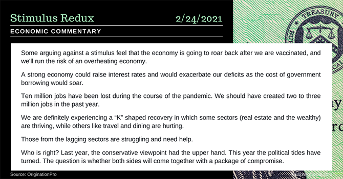 Almost a full year into this pandemic, and the same debate concerning the size and need for a stimulus package is resurfacing again.